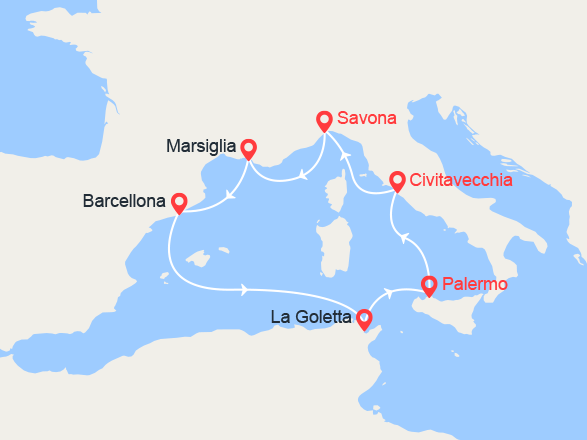 Questa crociera effettua imbarchi in porti italiani.