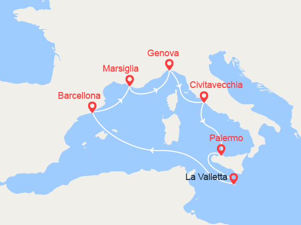 Barcellona - Marsiglia - Genova - Civitavecchia - Palermo - La Valletta vedere di +