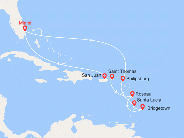 Miami - San Juan - Saint Thomas - Roseau - Bridgetown (Barbados) - Santa Lucia - Philipsburg vedere di +